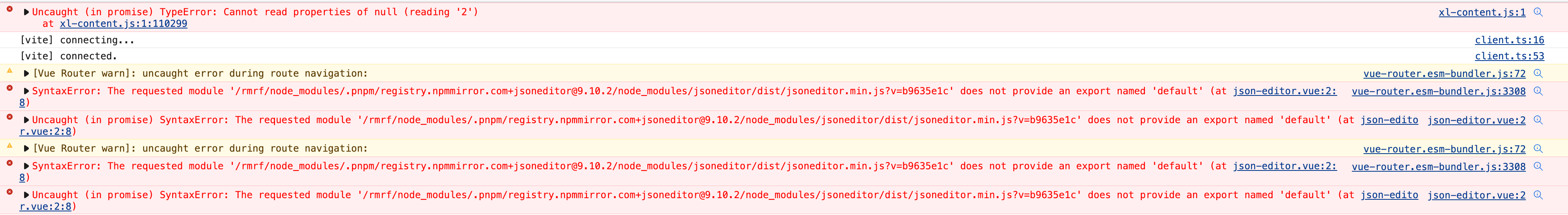 SyntaxError: The requested module '/rmrf/node_modules/.pnpm/registry.npmmirror.com+jsoneditor@9.10.2/node_modules/jsoneditor/dist/jsoneditor.min.js?v=b9635e1c' does not provide an export named 'default'